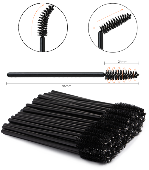 Die Bürsten für Wimpern und Augenbrauen sind leicht und sehr handlich. Ihre synthetischen, spiralförmigen Borsten garantieren eine präzise Arbeit. Da sie auf einem dünnen Draht montiert wurden, ermöglichen sie es Ihnen, den Applikator so zu biegen, dass Sie alle Härchen bequem erreichen können.